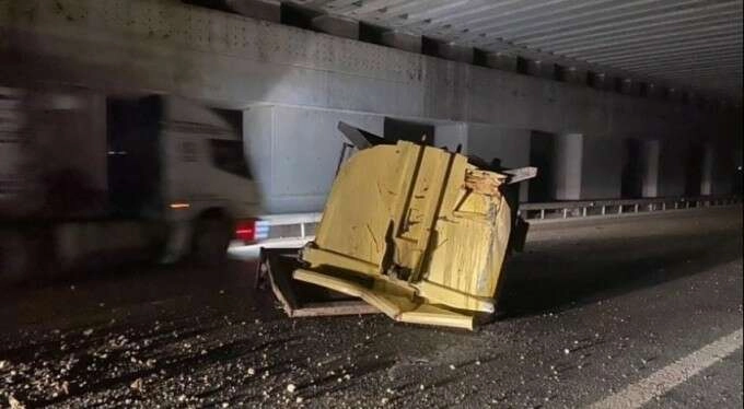 Kaza, geçtiğimiz akşam Bursa-İzmir-İstanbul otoyolu altında bulunan yolda ilerleyen kamyonun dorsesi üst geçide çarptı.