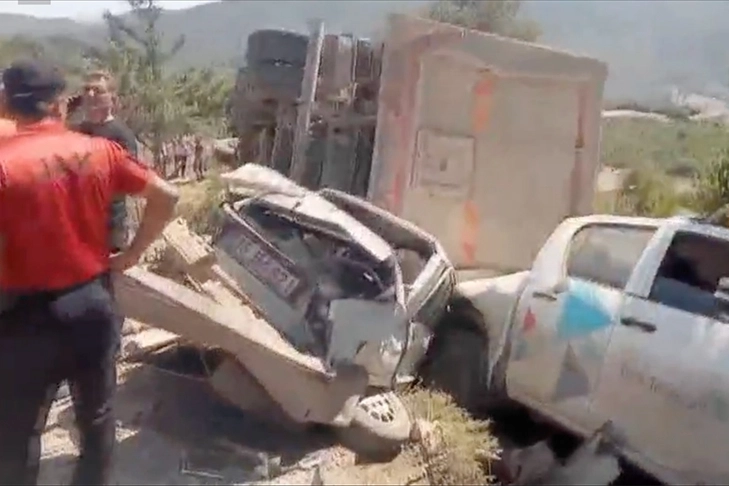 Freni boşaldığı belirtilen kamyonun çarpması sonucu yaralıların olduğu ifade edildi.