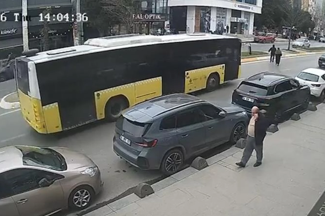 Öte yandan kaza çevredeki bir iş yerinin güvenlik kamerasına yansıdı. Polis ekipleri kazayla ilgili inceleme başlattı.