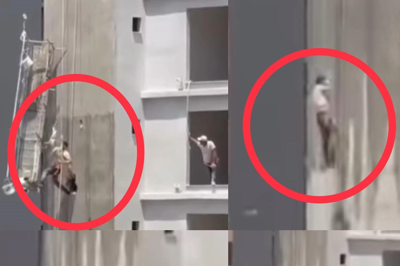 Olay, merkez Mezitli ilçesi Tece Mahallesi'ndeki inşaat halindeki 10 katlı bir binada meydana geldi. Edinilen bilgiye göre, iskelede 6. katta çalışan bir işçi, halatın aniden kopmasıyla birlikte metrelerce yükseklikte havada asılı kaldı. Emniyet halatı bağlı olan işçi, 5. kat seviyesinde dakikalarca yardım bekledi. Bir süre sonra emniyet halatının ani bir gevşemesiyle işçi hızla aşağıya doğru kaydı ancak 1. kat seviyesinde tekrar durdurdu. Büyük panik yaşayan olayda işçi yara almadan kurtarıldı.