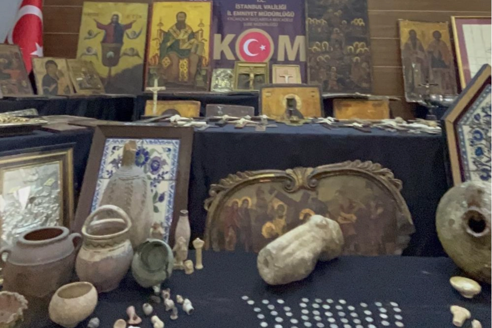 Türk varlığının sembolü olarak kabul edilen "Aslan" ve "Güneş" tasviri Baskınlarda 6 şüpheli yakalanarak gözaltına alındı. Söz konusu adreslerde yapılan aramalarda ise 13. yüzyıla ait Anadolu Selçuklu dönemine tarihlendiği düşünülen ve Anadolu toprakları üzerinde kadim Türk varlığının sembolü olarak kabul edilen "Aslan" ve "Güneş" tasviri damgası bulunan 81 gümüş sikke, Anadolu illeri ve özellikle İstanbul'da kiliselerde ayin ve ibadet amacıyla kullanılan çalıntı Hz. İsa, Hz. Meryem ve Hristiyanlık dönemine ait aziz ve azizelerin resmedildiği ahşap ve gümüş kaplamalı 184 ikona, Osmanlı Dönemine ait olduğu değerlendirilen cami ve medreseler başta olmak üzere dini yapılardan sökülmüş, vakıf eseri olarak tescillenmiş olabileceği değerlendirilen ibadethanelerden çalınma ve sökülme yoluyla elde edilmiş 35 taşınmaz karo parçası, Ege Bölgesi sınırları içerisinde yer alan Roma İmparatorluk/Yunan İmparatorluk Dönemlerine ait olan antik şehirlerden çalındığı değerlendirilen 1 mermer heykel bacağı, Bizans dönemine ait olduğu değerlendirilen, genellikle lahit mezarların içerisinde bulunan 7 cam süs eşyası obje olmak üzere toplam 931 eser ve obje ele geçirildi.