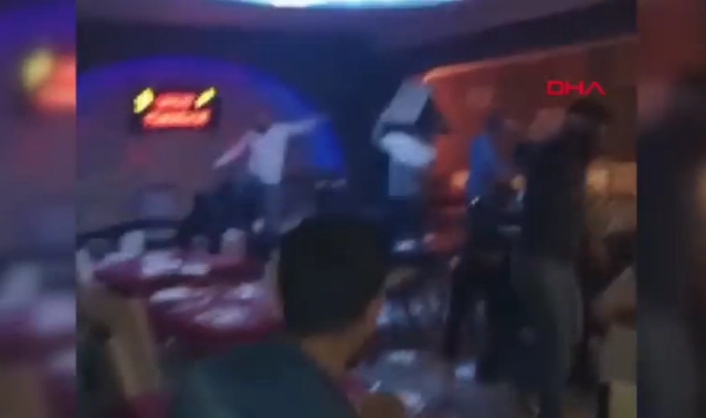 Ataşehir'de bir müşterinin istek parça talebiyle başlayan tartışmanın ardından çıkan kavgada, türkü evi savaş alanına döndü. Şişe, sandalye ve masaların havada uçuştuğu kavgada, 1 kişi yaralandı. O anlar, bir müşterinin cep telefonu kamerası tarafından saniye saniye görüntülendi.