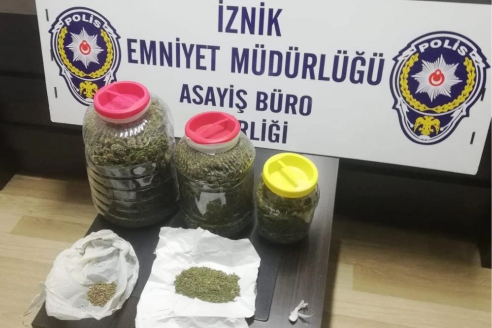 İznik Emniyet Müdürlüğü ekiplerince ilçe genelinde yapılan planlı çalışmalarda M.O.'nun üzerinde ve kullandığı barakada yapılan aramalarda toplam 2 kilo 140 gram esrar, 13 gram Hint keneviri tohumu, 86 gram metamfetamin ele geçirildi. M.O. uyuşturucu madde ticareti suçundan çıkarıldığı mahkemece tutuklanarak cezaevine gönderildi.