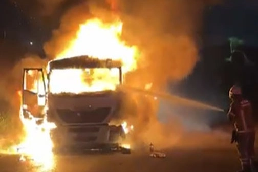 Olay gece saatlerinde Çanakkale–İzmir kara yolu Yeni Foça yolunda meydana geldi. Edinilen bilgilere göre, Yeni Foça Yolu Fabrikalar mevkiinden İzmir yönüne seyir eden Yusuf Çetinkaya'nın kullandığı 43 KU 404 plakalı 20 ton dökme kömür yüklü TIR'ın, çekici bölümünden aniden dumanlar yükselmeye başladı. Alevleri fark eden sürücü Yusuf Çetinkaya aracı yol kenarına çekerek hızla dışarı çıktı ve canını kurtardı. Ancak kısa sürede büyüyen yangın TIR'ı sardı. İhbar üzerine olay yerine İzmir Büyükşehir Belediyesi İtfaiye ekipleri sevk edildi.