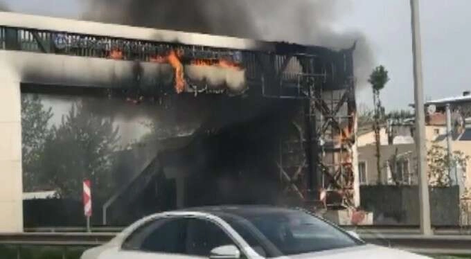 Edinilen bilgiye göre sokakta yaşayan vatandaşların ısınmak için yaktığı ateş sonucu yanmaya başlayan üst geçit kısa sürede alevlere teslim oldu.