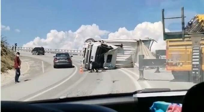 İddiaya göre viraja giren kamyon kontrolden çıkarak devrildi.