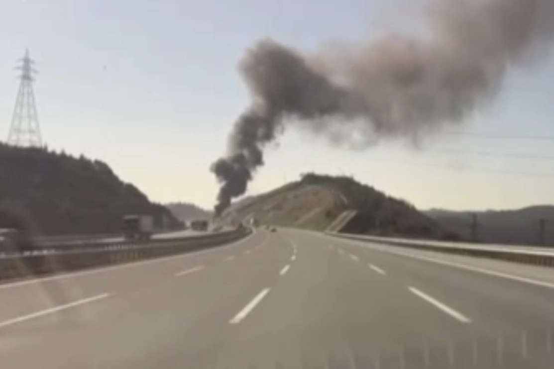 Arnavutköy Kuzey Marmara Otoyolu’nda beton pompası bilinmeyen bir nedenle alev alev yanmaya başladı. Kısa sürede alev topuna döndü. İhbar üzerine olay yerine gelen itfaiye ekipleri yangını söndürdü. Beton pompası kullanılamaz hale gelirken, yaşanan o anlar cep telefonu kamerası ile görüntülendi.