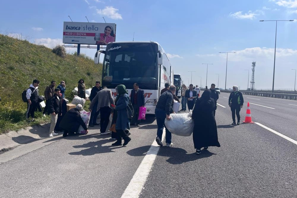 Olay, 14.15 sıralarında Kuzey Marmara Otoyolu Başakşehir mevkiinde meydana geldi. Edinilen bilgiye göre İstanbul'dan Malatya'ya seyir halindeki 44 AGZ 649 plakalı Kayısı Kent firmasına ait Mercedes marka otobüs, bir anda yanmaya başladı. Kısa sürede motor kısmını alevler sararken, otobüsün içerisine duman dolmaya başladı. Yolcuların hemen araçtan tahliye edildiği ve herhangi bir yaralanmanın yaşanmadığı öğrenildi. Farklı bir otobüsün gelmesi ile vatandaşlar seyahatlerine devam etti. Otobüsün yanma anlarını anlatan Celal Serdar isimli yolcu, "Yola çıktık, bir tünel vardı, oraya girmeden bir duman kokusu geldi. Buraya geldiğimizde ise koku artmış ve ateş çıkmıştı. Arabanın arka kısmı yanıyordu. Ben de zaten arka tarafta oturuyordum. Herkes çıktı ama oğlum ve ben zor çıktık. Bir süre içeride kaldık ve dumandan etkilendik. Çok şükür yaralı yok. Şimdi de başka bir otobüs geldi, onunla yola devam edeceğiz" dedi. Öte yandan, motor kısmından başlayan yangın sonrası otobüsten yükselen dumanlar bir vatandaş tarafından cep telefonu kamerasıyla kaydedildi.