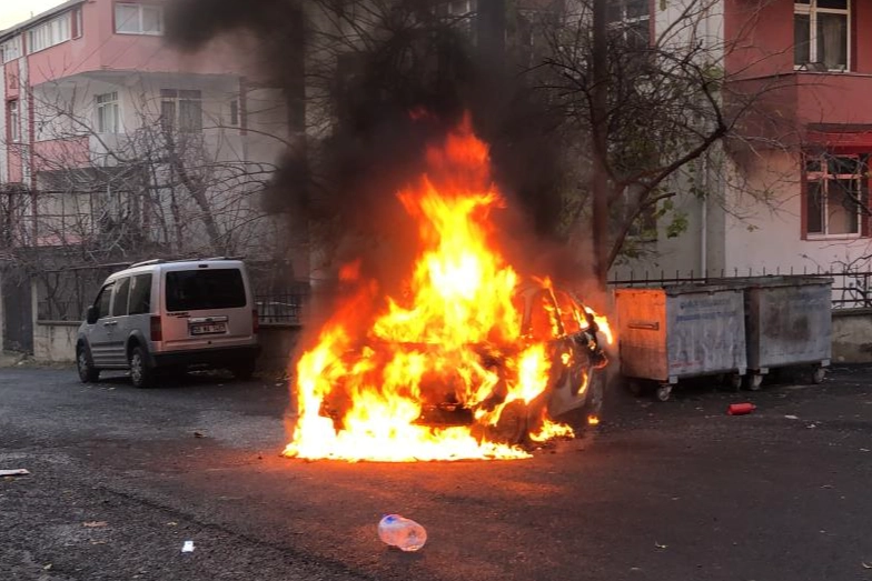 Araç sahibi İdris Yurtseven, “Evdekileri bir yere kadar bırakmıştım. Dönüşte evimin önüne arabayı park edeyim derken birden motor tarafı alev aldı. Ne sebeple çıktığını bilmiyorum. Çok şükür biz de bir şey yok, aracımın sigortası var” diye konuştu.