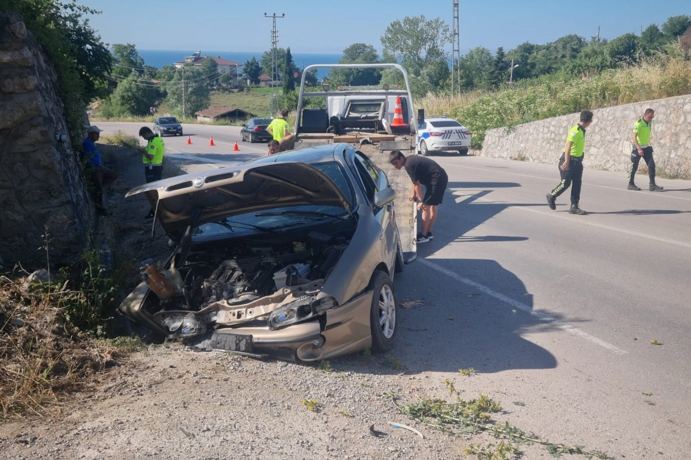 Kaza, saat 16.30 sıralarında Sinop Havalimanı yolunda meydana geldi. Edinilen bilgilere göre, 57 AJ 136 plakalı otomobil, sürücüsünün direksiyon hakimiyetini kaybetmesi sonucu yol kenarındaki duvara çarptı. Çarpma sonucu otomobilde bulunan biri bebek 3 kişi yaralandı. İhbar üzerine bölgeye polis ve sağlık ekipleri sevk edildi. Yaralılar, yapılan ilk müdahalenin ardından Sinop Atatürk Devlet Hastanesine kaldırıldı. Büyük maddi hasar meydana gelen otomobil, çekiciyle olay yerinden kaldırıldı.
