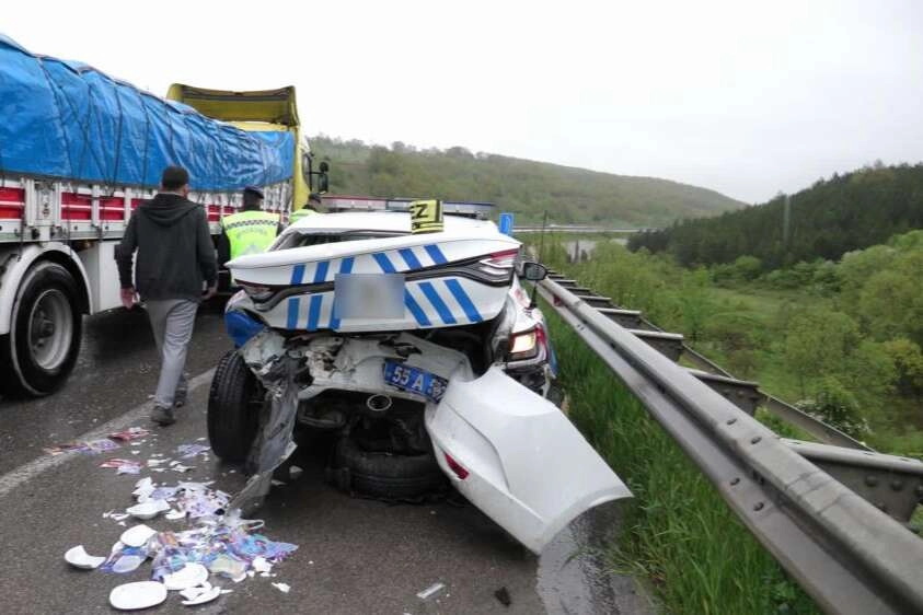 Hamza Yaman yönetimindeki 53 KA 798 plakalı otomobil direksiyon hakimiyetinin kaybedilmesi sonucu yoldan çıkarak emniyet şeridinde park halindeki 55 A 59616 plakalı polis aracına arkadan çarptı. Çarpışmanın şiddetiyle savrulan polis aracı da lastiği patlayan araca çarptı. Kazada, Recep Yaman ve Hatice Yaman yaralandı. Yaralılar, ambulanslarla hastaneye kaldırıldı. Kazayla ilgili soruşturma başlatıldı.
