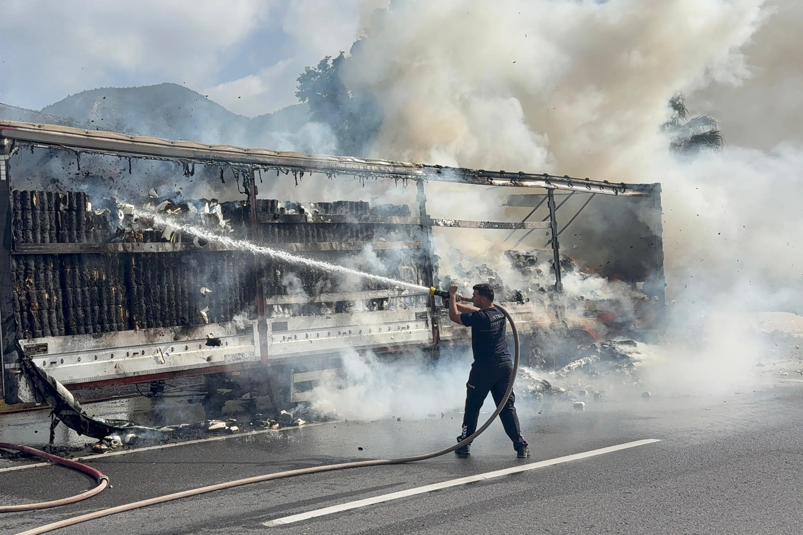 Olay, Gazipaşa ilçesi Muzkent Mahallesi'nde meydana geldi. Edinilen bilgiye göre, seyir halindeki 41 DB 622 plakalı Mercedes marka tırın dorsesi bir anda yanmaya başladı. Peçete yüklü tırın sürücüsü Ahmet S., aracından yükselen dumanları fark edince hemen tırı yol kenarına çekerek soğukkanlı bir şekilde yangının büyümesini engellemek için tırın dorsesini çekici bölümden ayırarak alevlerin tüm araca sıçramasını önledi. Ahmet S., daha sonra durumu 112 Acil Çağrı Merkezi'ne bildirerek yardım istedi. İhbar üzerine olay yerine jandarma, polis ve itfaiye ekipleri sevk edildi. Yangına ilk müdahaleyi itfaiye ekipleri yaparken, olay yerine çağrılan kepçe yardımıyla alevler kısa sürede kontrol altına alındı. Yapılan müdahalelere rağmen tırın dorsesi ile birlikte içerisindeki çok sayıda peçete tamamen yanarak kullanılamaz hale geldi.