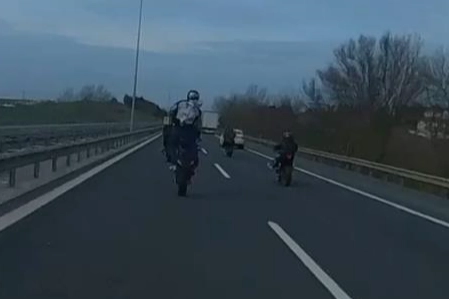 Hafta sonu İstanbul’un farklı noktalarında kaydedilen görüntülerde, plakaları kapalı motosiklet sürücülerinin tek tekerleklerini kaldırarak veya farklı akrobasi hareketleri yaparak yolculuk yaptıkları tehlikeli anlar görüldü. Çatalca yolu ve Kuzey Marmara Otoyolu’nda çekilen görüntülerde plakası kapalı olan farklı motosiklet gruplarının otoyolda tek tekerlek üzerinde seyrederek veya makas atarak hem kendi canlarını hem de trafik güvenliğini tehlikeye attıkları görüldü.
