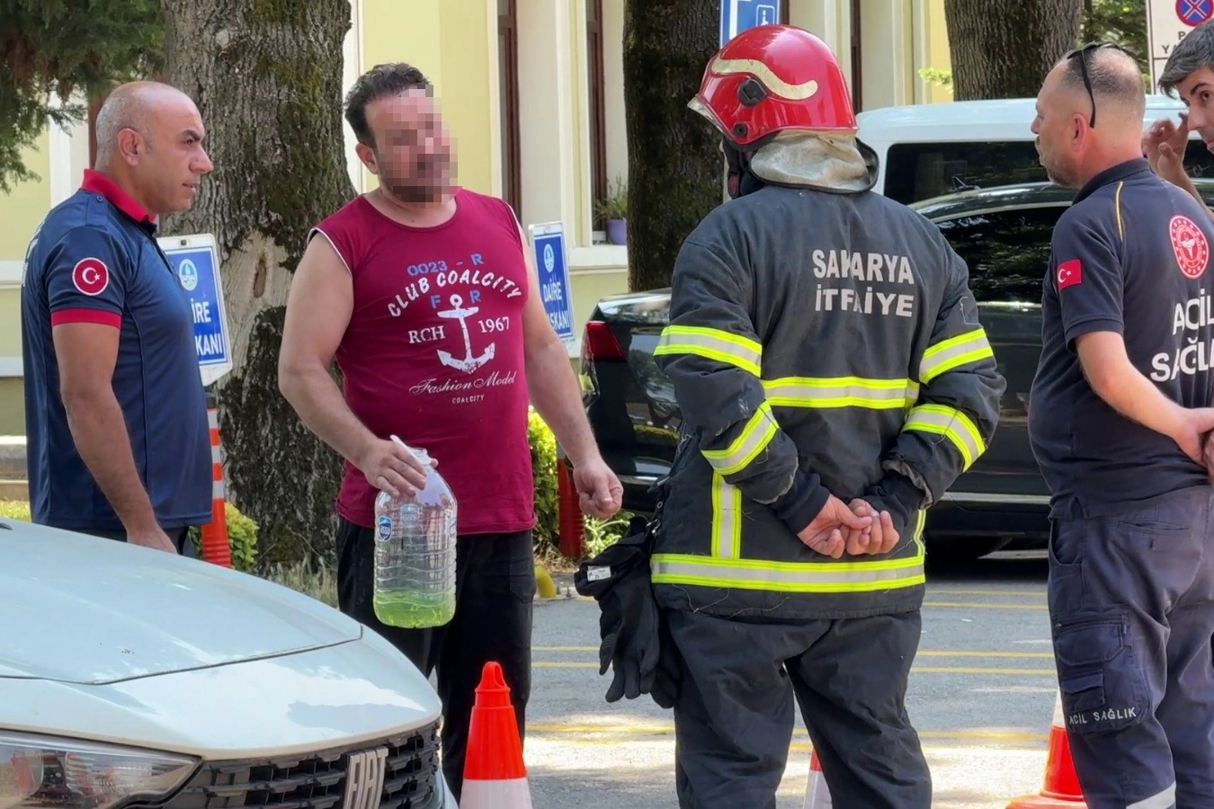 Olay, Adapazarı şehir merkezinde bulunan Aziz Duran Parkı içerisindeki Sakarya Büyükşehir Belediyesi Su ve Kanalizasyon İdaresi (SASKİ) Genel Müdürlüğü binası önünde meydana geldi. İddiaya göre, K.K. kurumla yaşadığı bir meselenin ardından elinde benzin dolu pet şişeyle binanın önüne geldi. Elinde benzin dolu bidon bulunan ve kendini yakacağını söylediği öne sürülen şahıs için bölgeye itfaiye, sağlık ve polis ekipleri sevk edildi. Ekiplerle görüşen K.K., motosikletinin yakıtının bittiğini, bu sebeple benzin aldığını söyledi. Şahıs, elindeki yakıtı motosikletinin deposuna dökerken olay yerine gelen SASKİ Genel Müdür Vekili Seyit Sakallıoğlu, şahısla bizzat görüşerek SASKİ binasına davet etti.