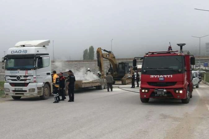 Alınan bilgiye göre, Bilecik kent merkezinden sanayi istikametine seyir halindeki Arda U. yönetimindeki 11 AC 400 plakalı tırın 11 DA 526 plakalı dorsesinde 2. Sanayi Bölgesi kavşağına geldiğinde bir anda alevler yükselmeye başladı. Sürücü çevredeki vatandaşların yardımı ile dorse de bulunan iş makinesini yanmadan indirmeyi başardı. Olay yerine gelen Bilecik Belediyesine ait itfaiye ekipleri yangını büyümeden söndürürken, araçta maddi hasar meydana geldi.