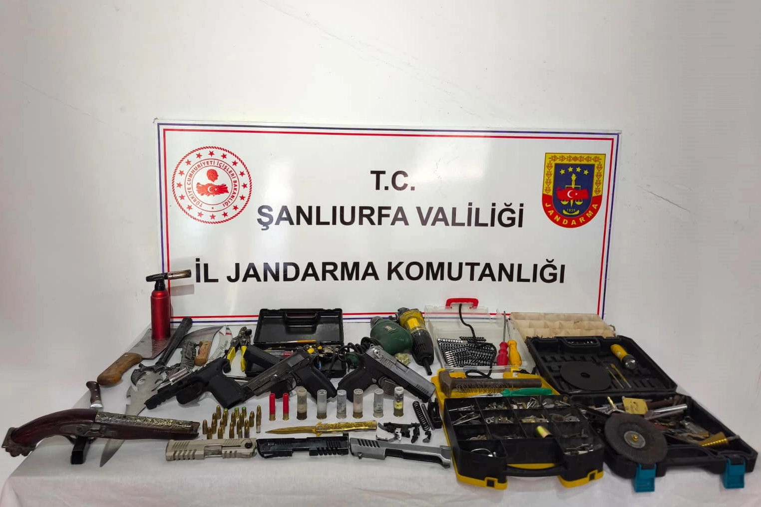 Edinilen bilgiye göre, Şanlıurfa İl Emniyet Müdürlüğü Kaçakçılık ve Organize Suçlarla Mücadele Şube Müdürlüğü ile Eyyübiye İlçe Jandarma Komutanlığı ekipleri, ruhsatsız silah bulundurulduğu belirlenen şüphelilerin evlerine operasyon gerçekleştirdi. Operasyonda 1 adet aslan kafası motifli eski ahşap Osmanlı silahı, 3 adet ruhsatsız tabanca, 2 adet silah üst kapağı, 2 adet şarjör, 32 adet farklı çaplarda ve ebatlarda fişek, 8 adet desenli bıçak ve kılıç, çok sayıda değişik cinste tabanca parçası, silah tamir ve yapımında kullanıldığı değerlendirilen aletler ele geçirildi. Gözaltına alınan 2 zanlı hakkında işlem başlatıldığı öğrenildi.