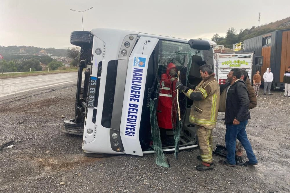 Kaza, saat 13.15 sıralarında Seferihisar ilçesi Mersinalanı Mahallesi'nde meydana geldi. Edinilen bilgiye göre, Narlıdere Belediyesine ait 35 EB 8702 plakalı otobüs, Şehit Osman Koç Stadı'na giriş yaptığı esnada yağışın da etkisiyle sürücüsünün direksiyon hakimiyetini kaybetmesi sonucu devrildi. Kazanın ardından olay yerine sağlık ve güvenlik ekipleri sevk edildi. Devrilen otobüste bulunan sporculardan 4'ü yaralanırken, yaralıların sağlık durumlarının iyi olduğu belirtildi. Kazayla ilgili inceleme başlatıldı.