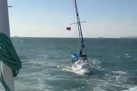 Çanakkale Boğazı girişinde sürüklenen yelkenli teknenin yardımına balıkçı teknesi yetişti.