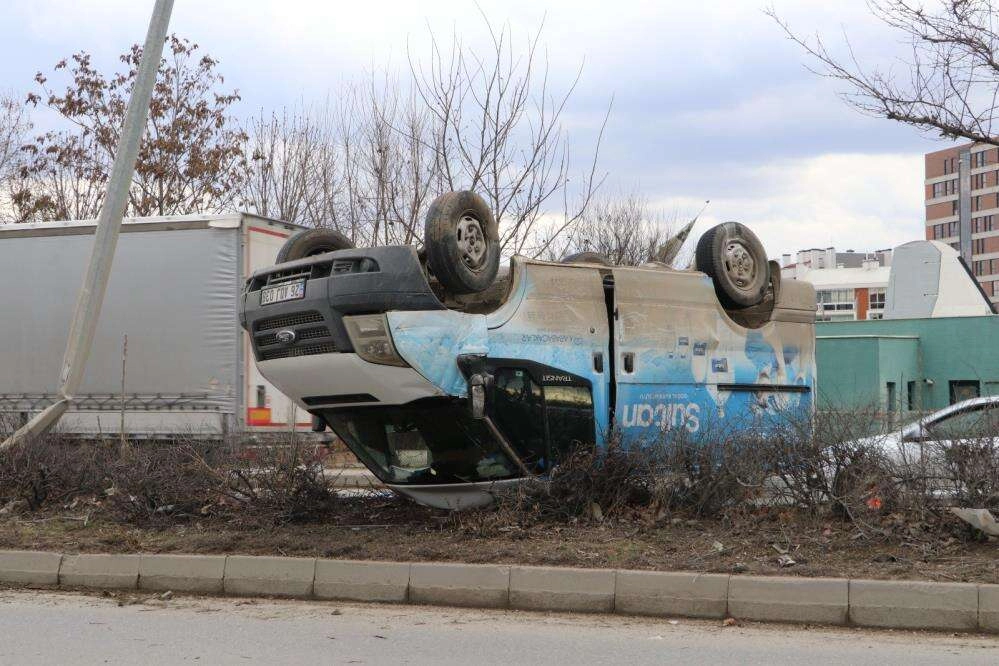 Edinilen bilgiye göre, Eskişehir-Bursa Karayolu'nda Bursa istikametine doğru ilerleyen 26 SN 800 plakalı hafif ticari aracın sürücüsü Sümeyye A., başka bir aracın kendisini sıkıştırması sonucunda direksiyon hakimiyetini kaybetti. Savrulmaya başlayan hafif ticari araç, aynı istikamette ilerleyen Cem Toygar K.'nin kullandığı 26 ADJ 038 plakalı kamyonete çarptı. Çarpmanın etkisiyle kamyonet savrularak refüje çıktı. Aydınlatma direği ve ağaca çarparak durabilen kamyonetin sürücüsü yaralandı. Polis, kazayla ilgili inceleme başlattı.
