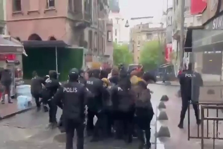 1 Mayıs Emek ve Dayanışma Günü'nde kısıtlama kararları nedeniyle Taksim'e çıkışlar yasaklandı. Yasağa rağmen İstiklal Caddesinin ara sokaklarında toplanan grup Taksim'e yürümek istedi. Polis, yürüyüşüne izin vermediği gruplara müdahale etti. Gözaltına alınan göstericiler, polis merkezine götürüldü.