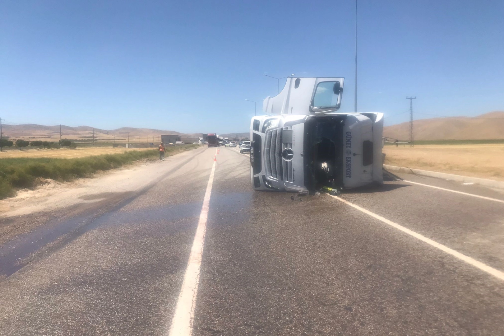 Kaza nedeniyle Sivas yolu bir süre trafiğe kapatılırken, çekici tankerin vinç yardımıyla kaldırılmasının ardından yol tekrar ulaşıma açıldı. Kazayla ilgili inceleme başlatıldı.