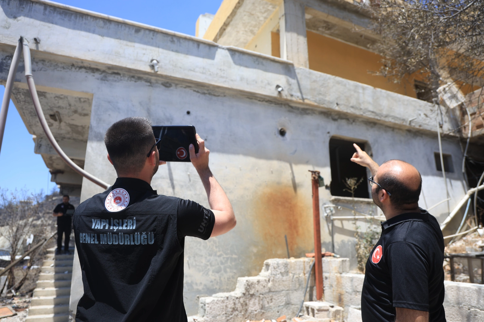 Antakya ilçesi Karaali Mahallesi'nde başlayan ve saatler süren mücadeleyle kontrol altına alınan yangın bölgesinde soğutma çalışmaları devam ediyor. Yangının ilk saatlerinden itibaren bölgede çalışma yapan Çevre Şehircilik ve İklim Değişikliği Bakanlığı Yapı İşleri Genel Müdürlüğü ekipleri tarafından hasar tespit çalışmalarını sürdürüyor.