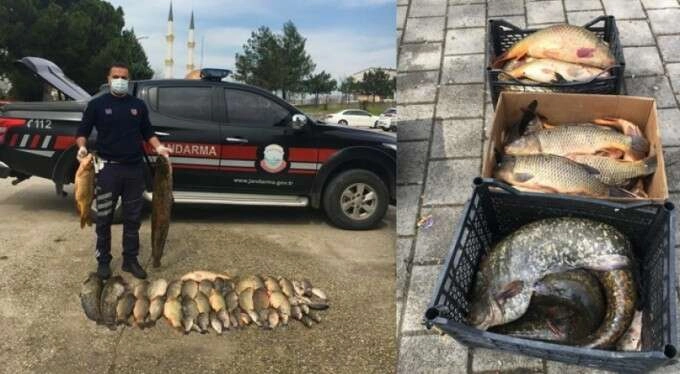 Kaçak avcılar E.A. ve B.L.'ye Av Yasağında Balık Satışı Yapmak suçundan 10 bin 910 lira idari para cezası uygulandı. Ayrıca jandarma ekipleri tezgahlardan ele geçirilen 50 kilo sazan balığı ile 25 kilo yayın balığını muhafaza altına alarak Bursa İl Tarım Müdürlüğüne teslim etti.