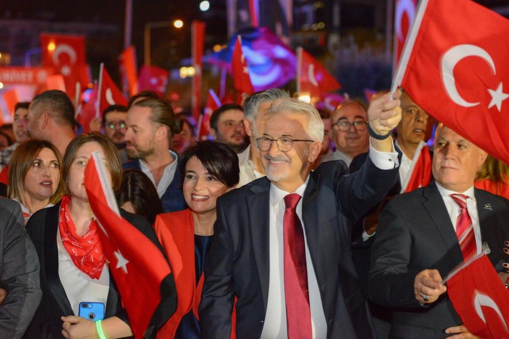 Yürüyüşe Nilüfer Belediye Başkanı Turgay Erdem ve eşi Zeynep Terzioğlu Erdem, CHP Bursa Milletvekilleri Prof. Dr. Kayıhan Pala ve Hasan Öztürk, CHP Bursa Büyükşehir Belediye Başkan adayı Mustafa Bozbey, CHP Bursa İl Başkanı Nihat Yeşiltaş, CHP Nilüfer İlçe Başkanı Özgür Şahin, sivil toplum örgütü temsilcileri ve vatandaşlar katıldı. Yoğun katılım nedeniyle zaman zaman izdihamın yaşandığı FSM Bulvarı’ndaki coşkuya, çevredeki evlerde oturan vatandaşlar da balkonlarından marşlar söyleyerek eşlik etti. Yürüyüşün ardından hastane alanını dolduran yüz binlerce kişi saygı duruşunun ardından İstiklal Marşı’nı büyük coşkuyla hep birlikte söyledi. Hastane alanında toplanan kalabalığa hitap eden Nilüfer Belediye Başkanı Turgay Erdem, tüm Türkiye’nin bayramını kutladı. Bu yıl, bir kâbusun içinde kurulan bir düşün, gerçek olmasının 100. yılını kutladığımızı ifade eden Başkan Erdem, “Cumhuriyetimiz 100 yaşında. Bugün özgürsek, bağımsızsak ve egemenliği ellerimizde tutuyorsak sebebi Cumhuriyet. Cumhuriyetin kıymetini anlamak için etrafımızdaki kıyamete bakmak yeterli olacaktır. Görüyorsunuz adeta ateş çemberinin içindeyiz. Savaşlarla, acılarla dolu, tarihin karanlık dönemlerinden birini yaşıyoruz. Biz bu karanlık dönemden de çıkar, her türlü zorluğu aşarız. Yeter ki adalet, eşitlik, özgürlük, laiklik ve demokrasi gibi cumhuriyetin temel değerlerine sarılmaktan vazgeçmeyelim. Bizler ikinci yüzyılda da Ulu önderimizin çizdiği yolda yürümeye devam edeceğiz. Üstelik daha güçlü ve emin adımlarla” ifadelerine yer verdi.