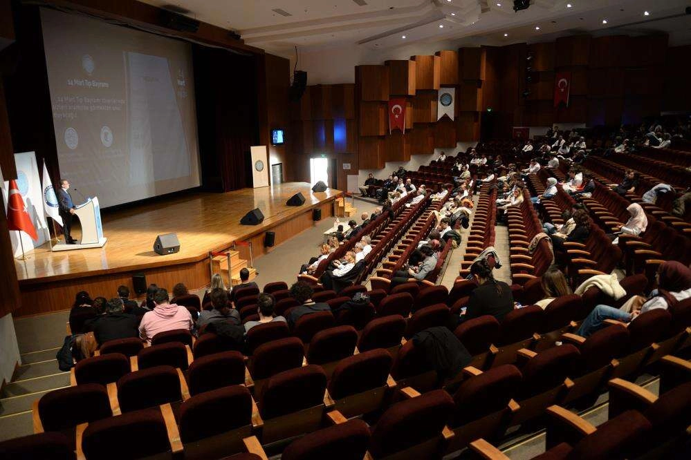 BUÜ Tıp Fakültesi Dekanlığı ve Bursa Tabip Odası’nın birlikte organize ettiği 14 Mart Tıp Bayramı, Prof. Dr. Mete Cengiz Kültür Merkezi’nde gerçekleştirildi. Törene BUÜ Rektörü Prof. Dr. Ahmet Saim Kılavuz, Tıp Fakültesi Dekanı Prof. Dr. Ekrem Kaya, Bursa Tabip Odası Başkanı Dr. Levent Tufan Kumaş, hekimler ve sağlık çalışanları katıldı. 6 Şubat tarihinde Kahramanmaraş merkezli büyük depremde hayatını kaydeden tüm sağlık çalışanlarını rahmetle anarak konuşmasına başlayan Rektör Prof. Dr. Ahmet Saim Kılavuz, yaşanan felaketten herkesin sorumluluk duygusu ile dersler çıkarması temennisinde bulundu. Hali hazırda bölgedeki yaraların sarılması adına çok sayıda hekimin ve sağlık personelinin görev yaptığını hatırlatan Prof. Dr. Ahmet Saim Kılavuz, “Depremden etkilenen illerimizde görev yapan sağlık ordumuza da kolaylıklar diliyorum. 14 Mart vesilesiyle buruk da olsa hepsinin bayramını kutluyorum. Zor süreçlerden geçiyoruz. Ancak mevcut şartlarda ne yapılması gerekiyorsa, yerine getirilmesi için uğraşıyoruz. Hekimlik hem önemli hem de direk insana dokunan bir meslek dalı. Bu anlamda son derece şerefli bir meslek olduğuna inanıyoruz. Allah hepsinden razı olsun. Bu özel gün vesilesiyle de tüm hekimlerimize ve sağlık çalışanlarımıza emeklerinden dolayı teşekkür ediyoruz” şeklinde konuştu. Tıp Fakültesi Dekanı Prof. Dr. Ekrem Kaya ise, 14 Mart Tıp Bayramı’nın Türkiye’deki modern tıp eğitiminin başlangıcı olarak kutlandığına işaret etti. Zaman içerisinde ülkenin geçtiği tüm buhranlı dönemlerde hekimlerin sorumluluklar almaktan asla çekinmediğini vurguladı. Hekimliğin sadece fen bilimlerini içeren bir meslek dalı olmadığının altını çizen Dekan Prof. Dr. Ekrem Kaya, “Hekimlik bir sanat, hekimlik bir zanaattır. Hekimlerimizin üzerine düşen tüm görevleri bugüne kadar gerek ülkemizde olsun gerekse de dünyada olsun yerine getirmişlerdir. Pandemi döneminde yine sağlık çalışanlarımız en ağır yükü üstlenmiş, şehitler vermiş ve yine de yakınmamıştır. Sürecin en iyi şekilde geride bırakılmasına vesile olmuşlardır. Deprem sürecinde de bölgeye ilk koşanlar arasında meslektaşlarımız bulunmaktadır. Hali hazırda bölgede görev yapmaya da büyük bir fedakârlık içerisinde devam etmektedirler. Her birine müteşekkir olduğumuzu iletiyor, görevlerinde kolaylıklar diliyoruz” açıklamasında bulundu. Törende Bursa Tabip Odası Başkanı Dr. Levent Tufan Kumaş, İntörn Doktor Edibe Ceylan da kısa birer konuşma gerçekleştirdi. Program, BUÜ Tıp Fakültesi Tıp Tarihi ve Etik Anabilim Dalı Öğretim Üyesi Prof. Dr. M. Murat Civaner’in ’14 Mart Tıp Öğrencilerinindir!’ konulu sunumu ile devam etti.