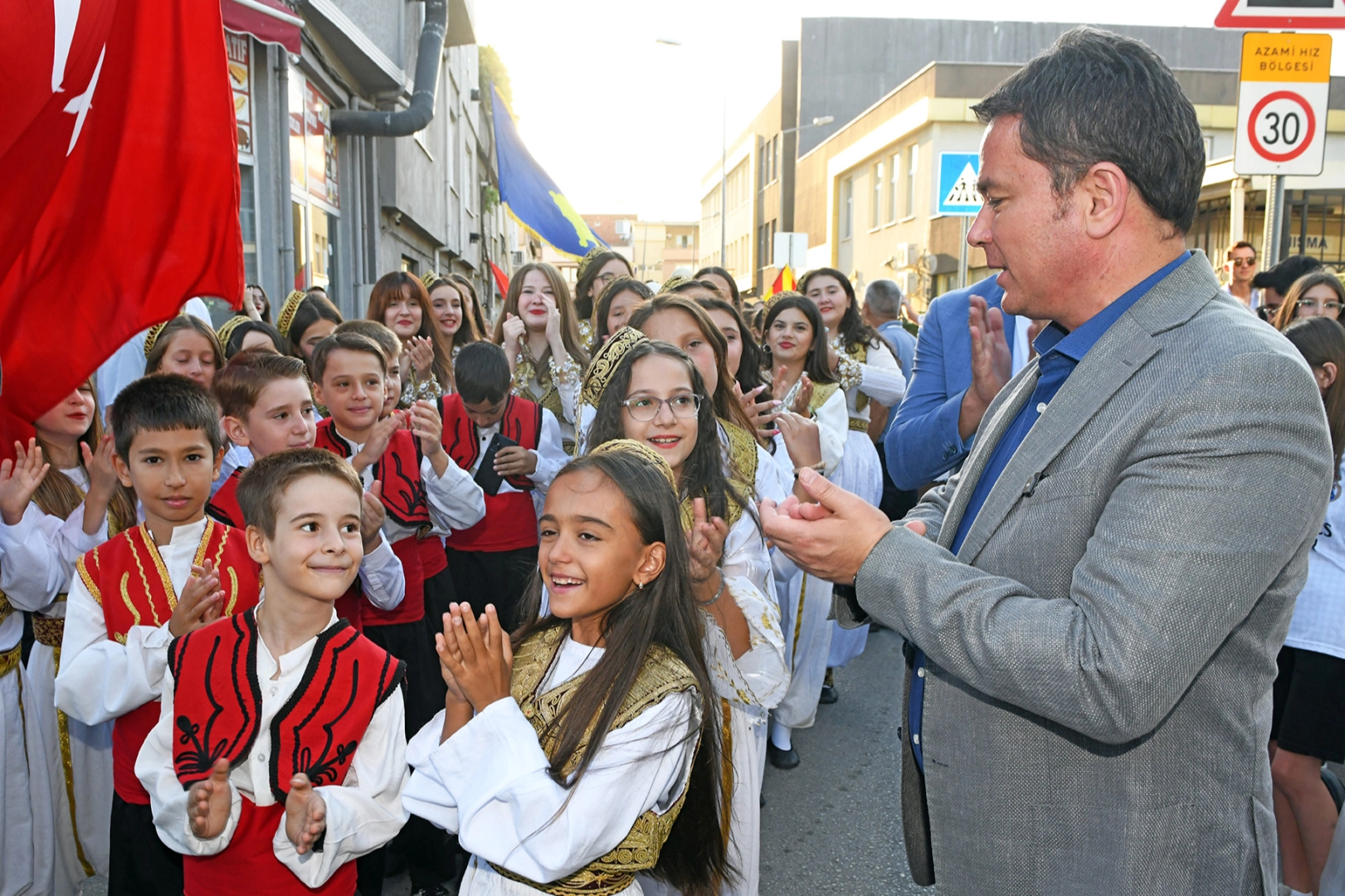 Kortej yürüyüşüne; Osmangazi Belediye Başkanı Erkan Aydın’ın yanı sıra, AK Parti Bursa Milletvekili Refik Özen, Bursa Büyükşehir Belediyesi CHP Grup Sözcüsü Yücel Akbulut, Osmangazi Belediyespor Kulübü Yönetim Kurulu Başkanı Fatih Karayılan ve NAKEM Başkanı Celal Yalçın katıldı. Festival kapsamında Makedonya, Kosova, Arnavutluk, Sırbistan, Bosna Hersek ve Karadağ’dan gelen dans grupları ile NAKEM Halk Dansları toplulukları, muhteşem bir geçit töreni sundu.