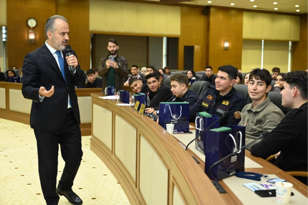 Bursa Büyükşehir Belediyesi’nin farklı hizmet birimlerinde staj yapan lise ve üniversite öğrencileri, Büyükşehir Belediye Başkanı Alinur Aktaş ile buluştu. Meclis Toplantı Salonu’ndaki programda gençlerle sohbet eden Başkan Alinur Aktaş, Büyükşehir Belediyesi’nin işleyişi, staj döneminin önemi hakkında bilgi vererek kendi tecrübelerini de öğrencilere aktardı.