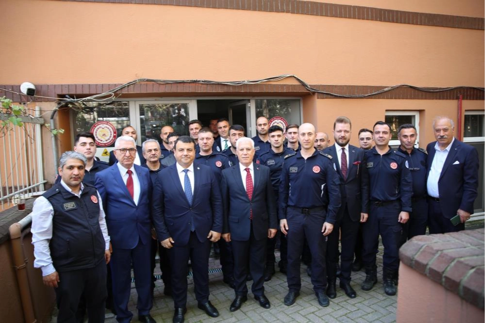 Ramazan Bayramı’nda toplumun her kesimiyle bir araya gelerek bayramlaşan ve vatandaşların sorunlarına yerinde çözüm üreten Bursa Büyükşehir Belediye Başkanı Mustafa Bozbey, 7/24 kesintisiz hizmet veren Büyükşehir Belediyesi çalışanlarını da unutmadı. Zabıta, İtfaiye ve Mezarlık Hizmetleri çalışanlarına bayram ziyaretinde bulunan Başkan Bozbey, görev başındaki personele bayram şekeri ikram etti. Başkan Mustafa Bozbey’e CHP Bursa Milletvekili Hasan Öztürk, meclis üyeleri ve Büyükşehir Belediyesi bürokratları eşlik etti.