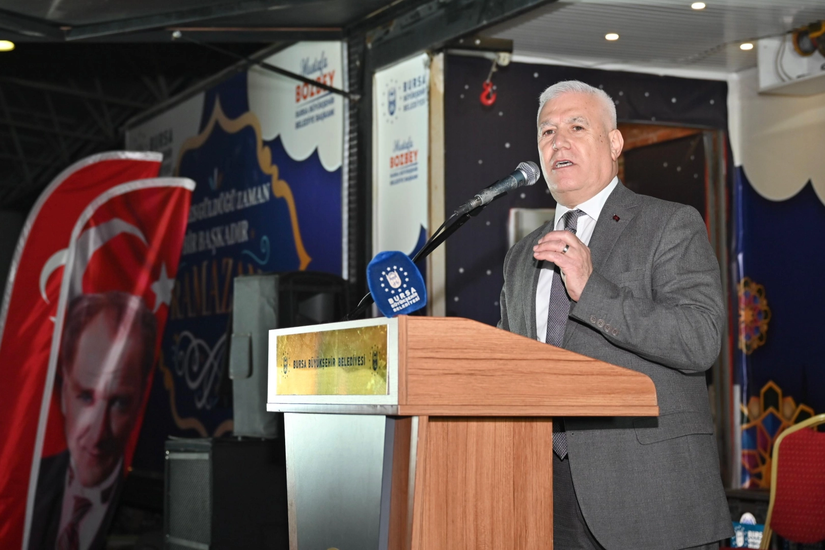 Bursa Büyükşehir Belediye Başkanı Mustafa Bozbey, Ramazan ayının paylaşma ve dayanışma ruhunu düzenledikleri programlarla artırarak devam ettirdiklerini söyledi. Her gün farklı bir ilçedeki iftar sofralarında vatandaşlarla bir araya geldiklerini belirten Başkan Mustafa Bozbey, iftar saatinde 15 ayrı noktada ise iftariyelikler dağıttıklarını anlattı. Gürsu’da birçok altyapı ve üstyapı hizmetini sürdürdüklerini dile getiren Başkan Bozbey, bir taraftan halkın ve muhtarların ilettiği talepleri yerine getirdiklerini, diğer taraftan Gürsu Belediyesi ile birlikte ortak projeleri hayata geçirdiklerini ifade etti. Her yaştan insanın gülümsediği bir Gürsu istediklerini söyleyen Başkan Bozbey, "Yakın zaman içerisinde Yakın Çevre Yolu’nu direk Gürsu’nun içine bağlayacağız. Böylece Ankara Yolu rahatlamış olacak. Gürsu TOKİ’ye giden yolla ilgili şikayetler olduğunu biliyorum. TOKİ’de yaşayan insanlarımızın kısa sürede ve güvenli bir şekilde kente ulaşmasını sağlayacak yolu kısa zamanda yapacağız" dedi.