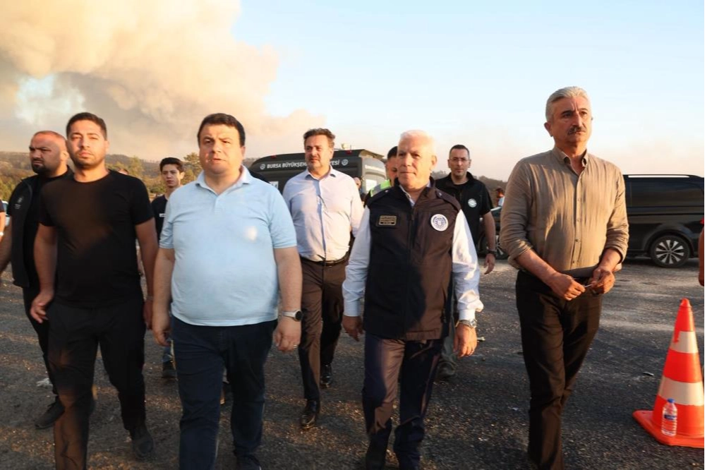 Bursa'nın Orhaneli-Harmancık ilçeleri arasında dün akşam saatlerinde başlayan ve kısmen kontrol altına alınan orman yangını, rüzgar sebebiyle bugün de etkisini sürdürüyor. Bursa Büyükşehir Belediye Başkanı Mustafa Bozbey, beraberindeki CHP İl Başkanı Nihat Yeşiltaş ve CHP Bursa Milletvekili Hasan Öztürk ile birlikte Harmancık ilçesine geçerek yangınla mücadele çalışmalarını yerinde inceledi. Orhaneli Belediye Başkanı Ali Osman Tayır ve Keles Belediye Başkanı Ali Doğru ile bir araya gelen Başkan Mustafa Bozbey, son durum hakkında fikir alışverişinde bulundu. Daha sonra AKOM aracına geçen Başkan Bozbey ve beraberindekiler, drone aracılığıyla alanı gözlemleyerek durum değerlendirmesi yaptı. "5-6 mahalle tamamen boşaltıldı" Bursa'nın 24 saati geçen bir süredir yangınlarla boğuştuğunu söyleyen Başkan Mustafa Bozbey, hem Türkiye'ye hem de Bursa'ya geçmiş olsun dileklerini iletti. Dün Orhaneli Yakuplar Mahallesi'nde başlayan yangının bugün Harmancık tarafına sıçradığını söyleyen Başkan Mustafa Bozbey, yangın tehlikesine karşı 5-6 mahallenin tamamen boşaltıldığını, bir mahallenin de risk oluşması halinde boşaltılacağını belirtti. Harmancık ilçesindeki yangının rüzgarın etkisiyle 6 farklı bölgede bir anda başlamış olmasının düşündürücü olduğunu ifade eden Başkan Bozbey, "Bu durum bizleri endişelendiriyor. Bursa son yılların en büyük acısını yaşıyor. Doğal bir felaket yaşıyor. Rüzgarın etkisiyle yayılan yangın sebebiyle çok fazla alanı kaybediyoruz. Yangının bir bölümü Harmancık'a doğru ilerlerken, bir bölümü Dursunbey'e doğru ilerliyor. Yangınla mücadeleyi Bursa Büyükşehir Belediyesi, kamu kurumları, sivil toplum kuruluşları, özel sektör ve vatandaşlar el ele sürdürüyor. 245 civarında aracımız ve 550-600 civarındaki personelimizle alandayız. Ekiplerimiz 26 saattir alanda görevinin başında. Hem dağ bölgesinde hem de Gürsu-Kestel bölgesindeki yangınların söndürülmesi için yoğun çaba harcanıyor. Müdahale etmemize rağmen yangını durduramamanın üzüntüsü içerisindeyiz" dedi. "Tankerin şarampole yuvarlanması sonucu iki kişi vefat etti, iki kişi yaralandı" Gürsu bölgesindeki yangınla mücadele çalışmalarının da aralıksız sürdüğünü anlatan Başkan Bozbey, bölgeden üzücü bir haber aldıklarını da dile getirdi. Yangın söndürme çalışmalarına katılmak için şehir dışından gelen bir tankerin şarampole yuvarlanması sonucu 2 kişinin vefat ettiğini, 2 kişinin de yaralandığını söyleyen Başkan Bozbey, "Ölenlere Allah'tan rahmet diliyorum. Mekanları cennet olsun. Yaralılara da şifalar diliyorum. Yangının söndürülmesi için çalışmalara katılan her bir vatandaşımıza teşekkür ediyorum. Bursa'da tüm halkımız dayanışmanın, bütünleşmenin örneğini bu yangında da ortaya koydu. İtfaiye teşkilatımız ve AKOM yapılanmamız AFAD ile birlikte Valiliğimizin koordinasyonunda sahada mücadele ediyor. Herkes görev ve sorumluluğunu fazlasıyla yerine getiriyor. Yanan alanları soğutma çalışmalarının ardından Valiliğimiz öncülüğünde yeşile dönüştürme projesini başlatacağız. Bizler bir yerine 5 ağaç dikerek destek olacağız" dedi.