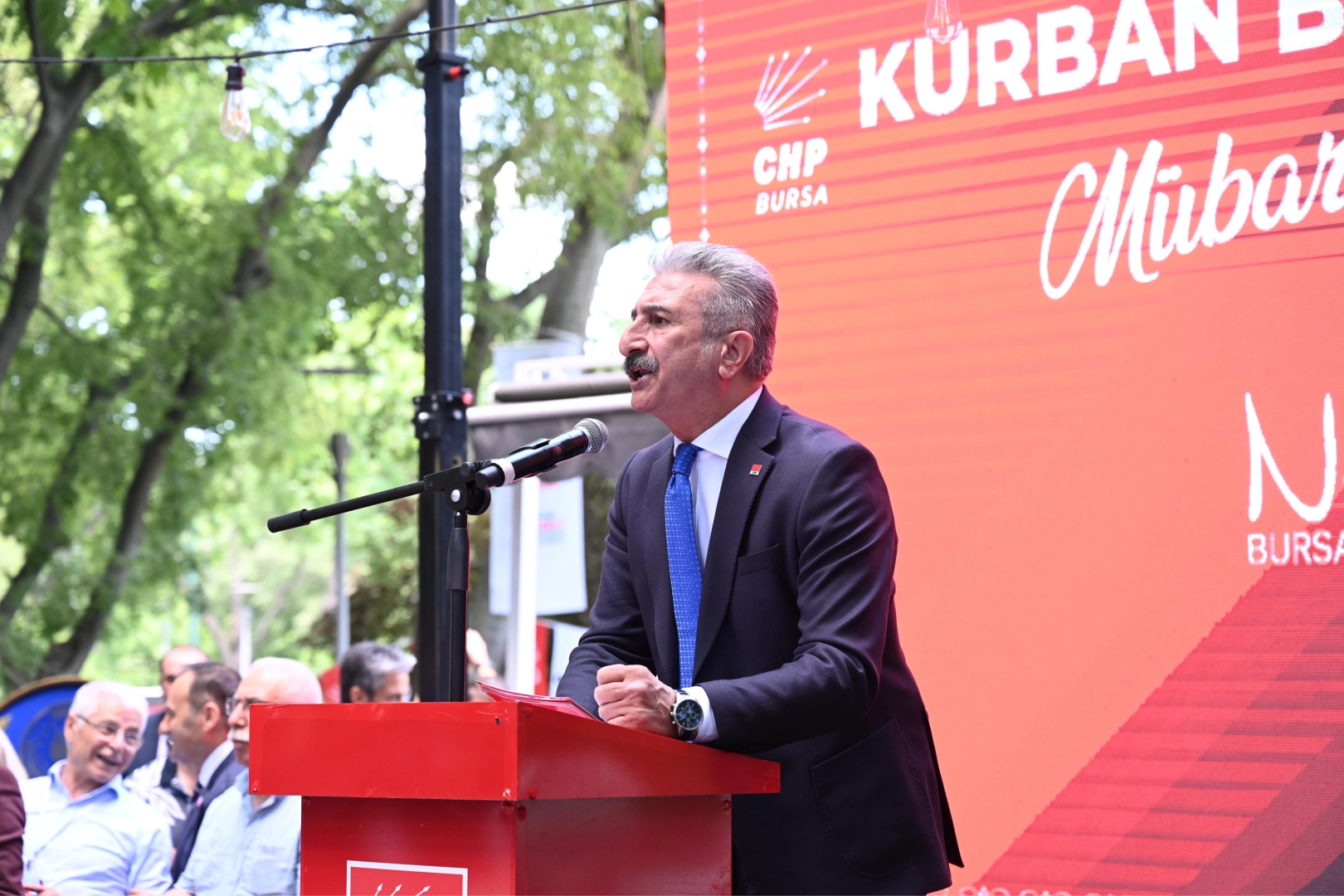 Bayramlaşma töreninde kürsüye çıkan ilk isim CHP Bursa İl Başkanı Nihat Yeşiltaş oldu.