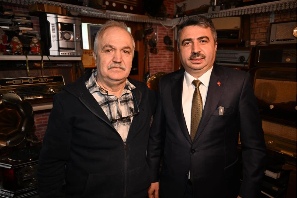 Yıldırım Belediye Başkanı Oktay Yılmaz, 40 yıldır eski radyo, televizyon ve gramofonlara yeniden hayat vererek tozlu raflardan inmelerini sağlayan koleksiyoner Ahmet Ali Şağın’ı ziyaret etti.