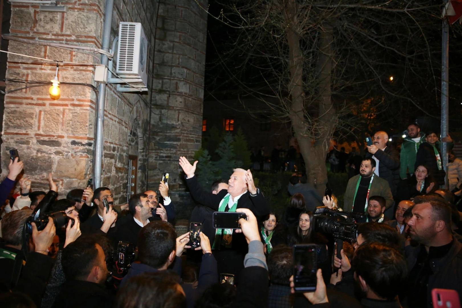 Saat 02.00’de başlayan organizasyonda Tarihi Taş fırın önünde bekleyen kalabalık, Bozbey’i “Bozbey gelecek Bursa gülecek” sloganları eşliğinde büyük coşkuyla karşıladı.