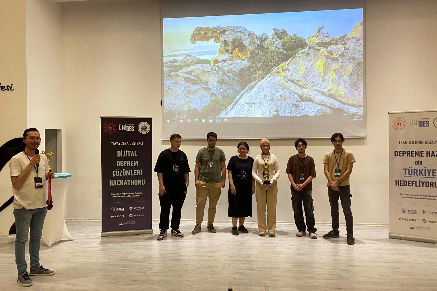 Mimar Sinan Yerleşkesi’nde, Endüstri ve Dijital Dönüşüm Topluluğu tarafından organize edilen Dijital Deprem Çözümleri Hackathonu, Gençlik ve Spor Bakanlığı ÜNİDES desteğiyle hayata geçirildi. 11 farklı takımdan oluşan 40 üniversite öğrencisi, 32 saat boyunca aralıksız çalışarak afetlere yönelik dijital çözümler üretti. Etkinlik süresince öğrenciler; deprem öncesi hazırlık, anlık müdahale ve sonrası iyileştirme süreçlerine odaklanan yazılım projeleri geliştirdi. Yarışmada birinciliği, Bursa Uludağ Üniversitesi Yönetim Bilişim Sistemleri öğrencilerinden oluşan İHAWK Takımı kazandı. Deprem sonrası yıkım tespiti ve sektörleme yapabilen bir insansız hava aracı sistemi geliştiren takım; Merve Subaşı, Ömer Turhan, Mehmet Sahaf Bayrakçı, Mohamad Alchekh ve Besmullah Nikzada’dan oluştu.