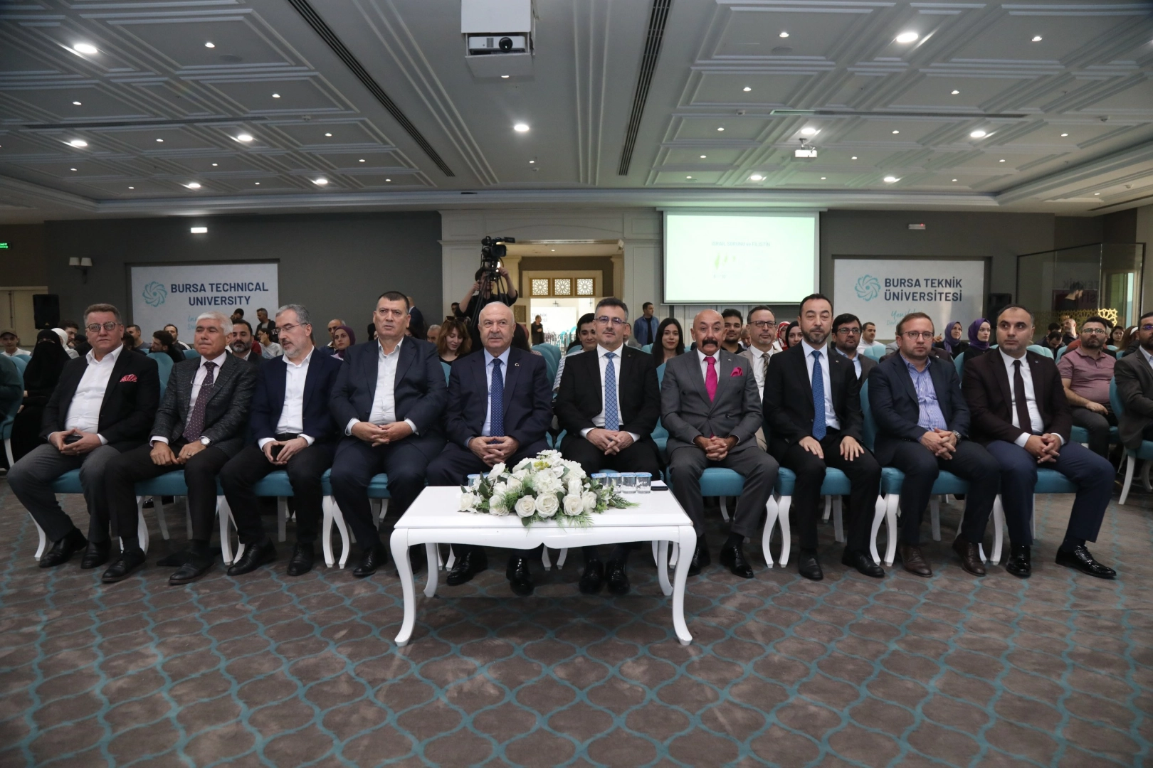 BTÜ tarafından Yıldırım Belediyesi’nin katkılarıyla düzenlenen ‘İsrail Sorunu ve Filistin’ konulu panelin moderatörlüğünü, Sakarya Üniversitesi Siyasal Bilgiler Fakültesi Uluslararası İlişkiler Bölümü Öğretim Üyesi Prof. Dr. Kemal İnat üstlendi. Panelin konuşmacıları ise Yalova Üniversitesi Yalova İktisadi ve İdari Bilimler Fakültesi Uluslararası İlişkiler Bölümü Öğretim Üyesi Dr. Mehmet Ali Uğur, Bursa Teknik Üniversitesi İnsan ve Toplum Bilimleri Fakültesi Uluslararası İlişkiler Bölümü Öğretim Üyeleri Doç. Dr. Ali Burak Darıcılı ve Doç. Dr. İsmail Akdoğan oldu.