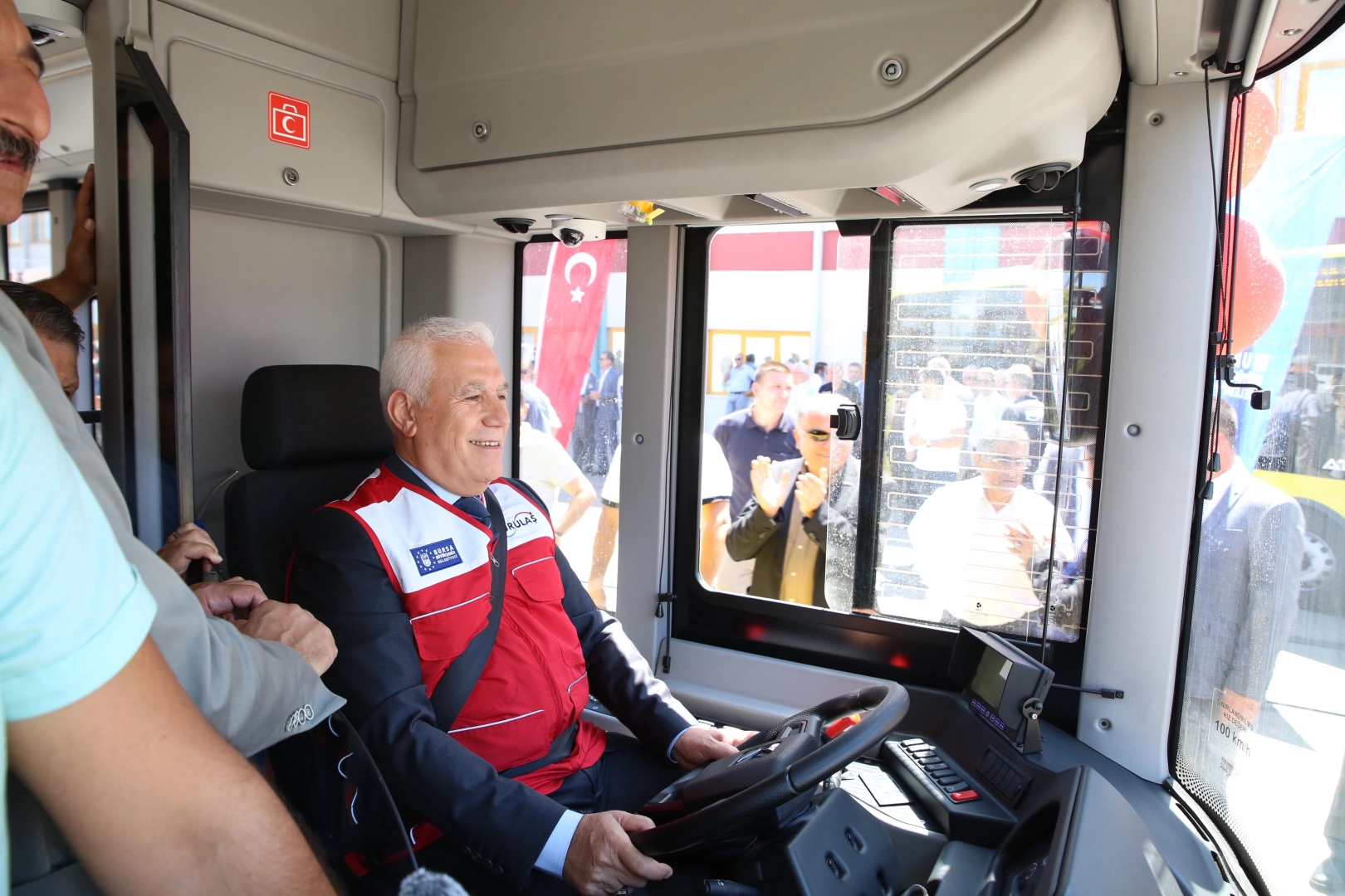 Konuşmaların ardından KARSAN yöneticileri ve BURULAŞ Genel Müdürü Fahrettin Beşli tarafından Başkan Mustafa Bozbey’e sembolik anahtar teslimi yapıldı. Kurdele kesiminin ardından Başkan Bozbey, direksiyon başına geçerek ilk test sürüşünü yaptı.