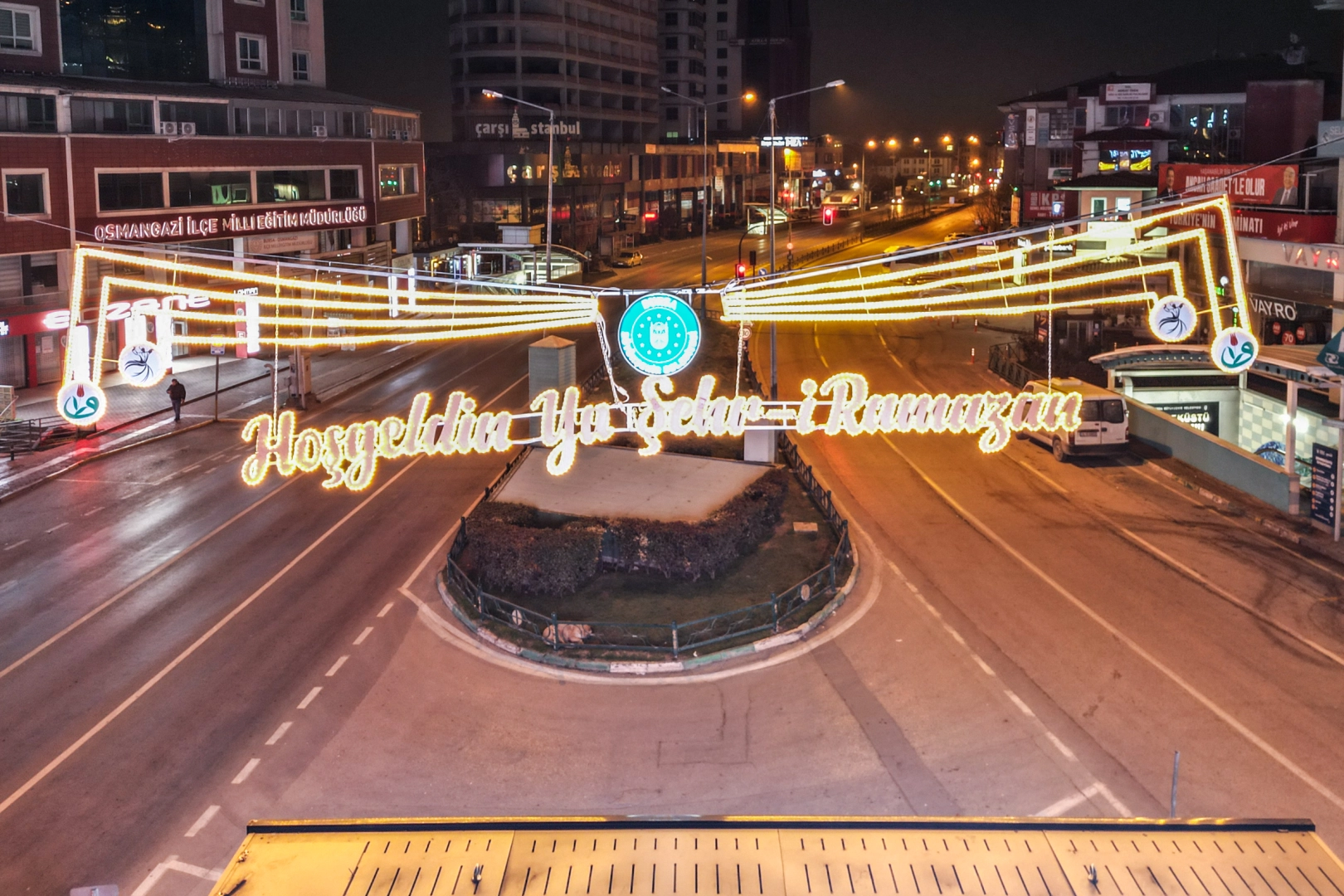 Bursa Büyükşehir Belediyesi, Fatih Sultan Mehmet Bulvarı, Setbaşı, Gökdere, Fomara, 15 Temmuz Demokrasi Meydanı, Hanlar Bölgesi ve Teleferik Meydanı gibi yoğun yaya ve araç trafiğine sahip noktaları Ramazan ayına özel mahyalarla süsledi.
