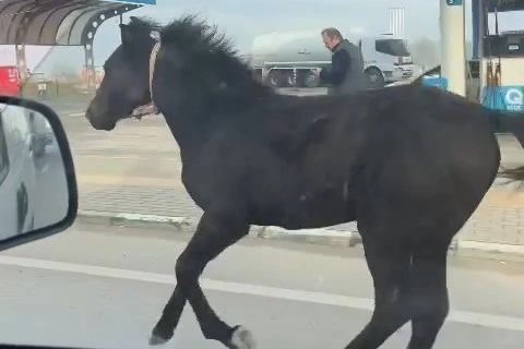 Bursa’da Ankara Caddesi’nden İzmir istikametine koşturan tay vatandaşlar tarafından cep telefonu ile kaydedildi. Ana caddede araçların arasında koşturan tayı, bir araç yan yola yönlendirmeye çalışsa da başarılı olamadı. Boynunda tasma olduğu görülen tay, bir süre sonra gözden kayboldu. Trafiğin yoğun olmaması faciayı önledi.