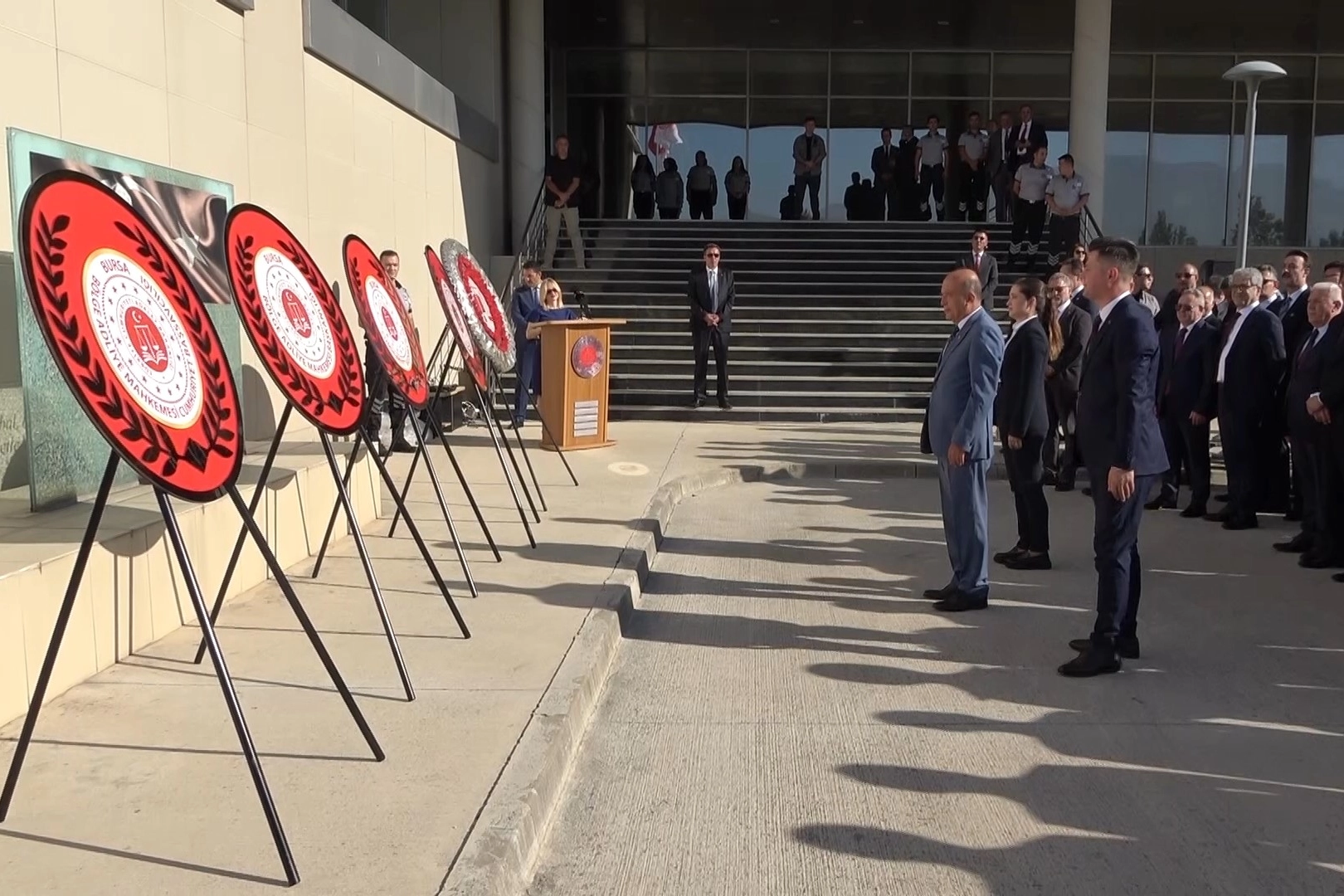 Bursa Bölge Adliyesi'nde 2025-2026 adli yılı için çelenk töreni gerçekleştirildi. Çelenk sunulmasıyla başlayan törende; saygı duruşunda bulunuldu, İstiklal Marşı okundu.