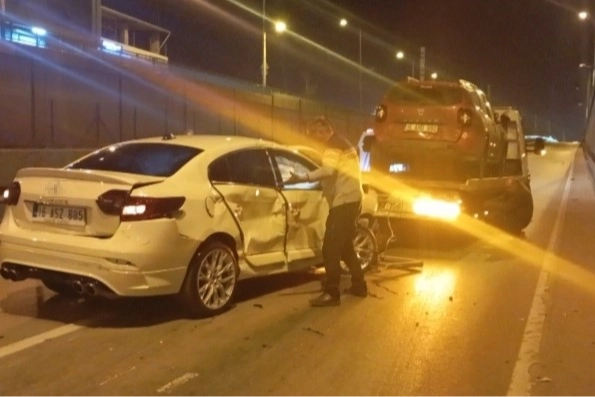 Kaza, 00.30 sıralarında Yıldırım ilçesi Esenevler Mahallesi Ankara Yolu Caddesi Kestel istikametinde meydana geldi. İddiaya göre seyir halindeki 16 AHD 692 plakalı otomobilin sürücüsü direksiyon hakimiyetini kaybederek aynı istikamette ilerleyen 16 ASZ 885 plakalı otomobile çarptı. Çarpmanın etkisiyle savrulan otomobil bariyerlere çarparak kullanılamaz hale geldi. Bu sırada kazadan kaçınmak isteyen 16 AAZ 765 plakalı otobüs, yaptığı manevra sonucu küçük çaplı maddi hasar aldı.