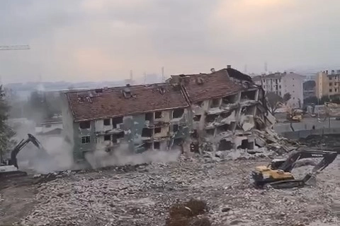 Boşaltılan binaların yıkım işlemleri gerçekleştirilmeye başladı. 4 katlı binanın yıkımı ise görenleri şoke etti.