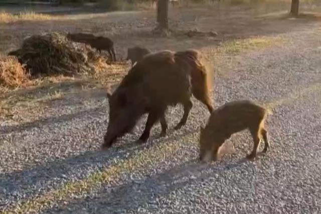 Domuzların zararsız olduğunu gören vatandaş ise domuzları kurabiye ile besledi. Bir süre daha gezen domuzlar daha sonra geldikleri zeytinlik alana giderek gözden kayboldu.