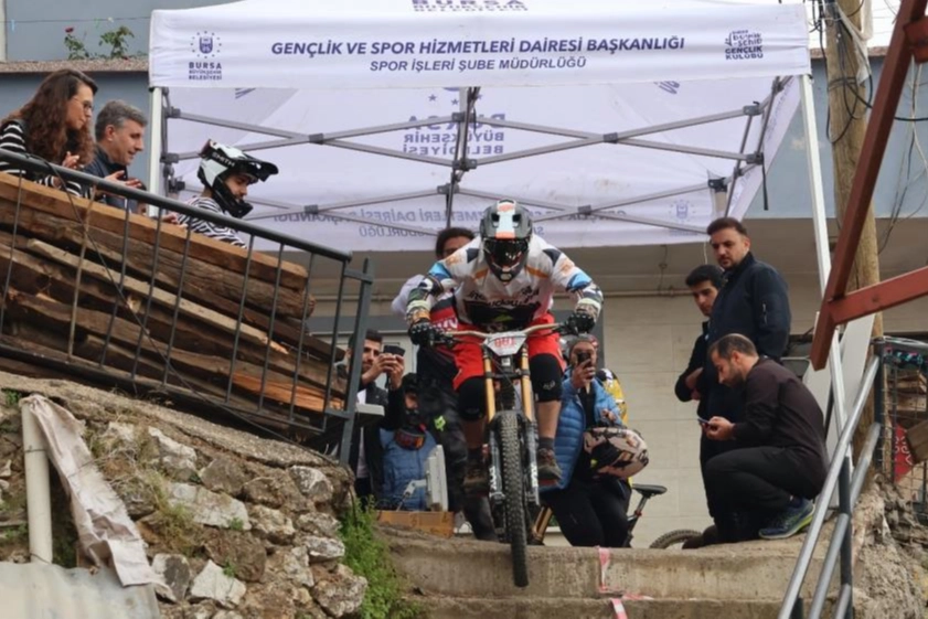 Bursa Valiliği ve Bursa Büyükşehir Belediyesi öncülüğünde Gençlik ve Spor İl Müdürlüğü, İl Milli Eğitim Müdürlüğü, Bursa Kent Konseyi ve Bursa Büyükşehir Belediyespor Kulübü iş birliğinde düzenlenen Bursa Uluslararası Spor Festivali, 17 ilçede devam eden spor etkinlikleriyle dolu dolu geçiyor. Doğa harikası parkurlara sahip olan Bursa, festival kapsamında yapılan Türkiye’nin ilk extrem bisiklet yarışı ‘Urban Downhill Yarışı’na (Şehir içi iniş) ev sahipliği yaptı. Mollafenari Mahallesi’nden başlayarak Tarihi Pınarbaşı Parkı’nda sona eren zorlu parkurda yarışmacılar, zamana karşı mücadele etti. Dar sokakları, dik merdivenleri ve keskin virajları hız kesmeden inen sporcular, Bursalılara adrenalin dolu anlar yaşattı. Merdivenlerden ve virajlardan teknik beceri ve cesaretlerini kullanarak ustalıkla dönen sporcular, izleyenlere unutulmaz anlar yaşattı. Gün boyu Bursa’nın tarihi sokaklarında tarih yazan bisikletçiler, yarışma sonunda Bursalılardan alkış aldı.