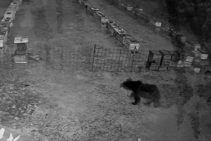 Uludağ eteklerindeki bir köye yakın arı çiftliğine gece saatlerinde giren ayı ailesi, arıcıların kabusu oldu. Anne ayı ve iki yavrusunun kovanlara ulaşmaya çalıştığı anlar güvenlik kameralarına yansıdı.