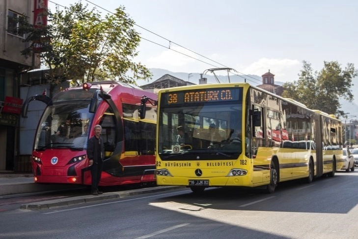 Bursa Büyükşehir Belediyesi, Ramazan Bayramı’nda vatandaşların rahat ve huzurlu bir şekilde ziyaretlerini gerçekleştirebilmeleri amacıyla 30 Mart, 31 Mart ve 1 Nisan tarihlerinde kent içi ayakta yolcu taşıyan hatlardaki toplu taşıma araçlarının, Bursaray ve tramvay hatlarının ücretsiz olacağını açıkladı. Bursa Büyükşehir Belediye Başkanı Mustafa Bozbey, paylaşmanın ve dayanışmanın en güzel yaşandığı Ramazan ayının manevi ikliminin kent genelinde düzenledikleri programlarla tüm Bursalılar tarafından hissedildiğini söyledi. Ramazan Bayramı’na ulaşacak olmanın mutluluğunu yaşadıklarını belirten Başkan Mustafa Bozbey, "Bursa Büyükşehir Belediyesi olarak Ramazan Bayramı’nda hemşehrilerimizin bayram ziyaretlerini ve ulaşımlarını kolaylaştırmak amacıyla hazırlıklarımızı tamamladık. Bu kapsamda kent içinde ayakta yolcu taşıyan BursaRay, tramvay ve otobüs hatlarımız, Ramazan Bayramı süresince (30-31 Mart ve 1 Nisan 2025) BursaKart kullanmak suretiyle ücretsiz olarak hizmet verecek. Bursa Büyükşehir Belediyesi ekiplerimiz, yaşanabilecek tüm olumsuzluklara karşı görev başında olacak. Şimdiden tüm vatandaşlarımızın Ramazan Bayramı’nı kutluyorum" dedi.