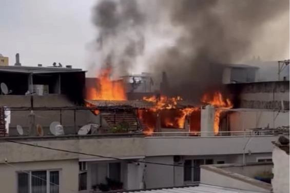 Bursa'da binanın çatısı alevlere teslim oldu